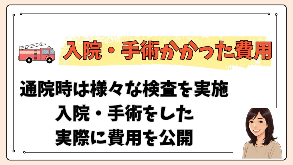• 交通費:片道約20km、通院・検査10回、入院7日間、術後検査2回で約760km。ガソリン代換算で約1万円